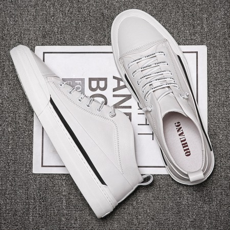 Men's Leather Board Shoes Trendy White Casual Shoes